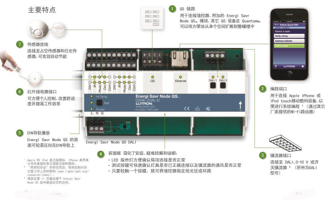 Energi Savr Node QS適用于任何商業(yè)空間,為其提供照明控制和實(shí)現(xiàn)節(jié)能的簡單及可編程解決方案。可使用Energi Savr Node QS來控制DALI(數(shù)碼可選址照明接口)、0-10V或開關(guān)鎮(zhèn)流器和連接占空傳感器、日光傳感器及墻控器,以實(shí)現(xiàn)照明控制。