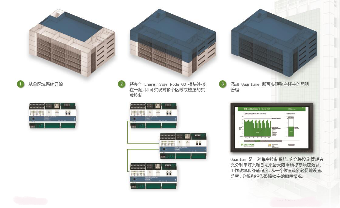 各模塊都可與Quantum連接,以實(shí)現(xiàn)整棟樓宇的照明管理。
